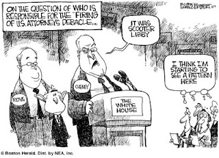 In today's Chicago Tribune, the columnist John Kass went on to descrive Rove and how he is a "troll under the bridge" for this White House. Also on Friday's Jim Lehrer, David Brooks said "it must be hard for republicans to get up and go defend republicans" It looks like the writing in on the wall for Gonales.